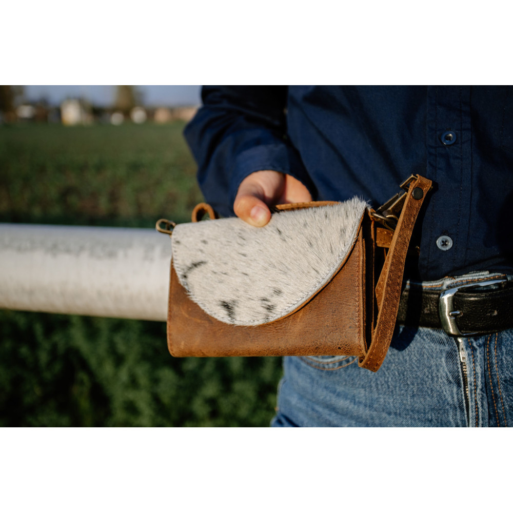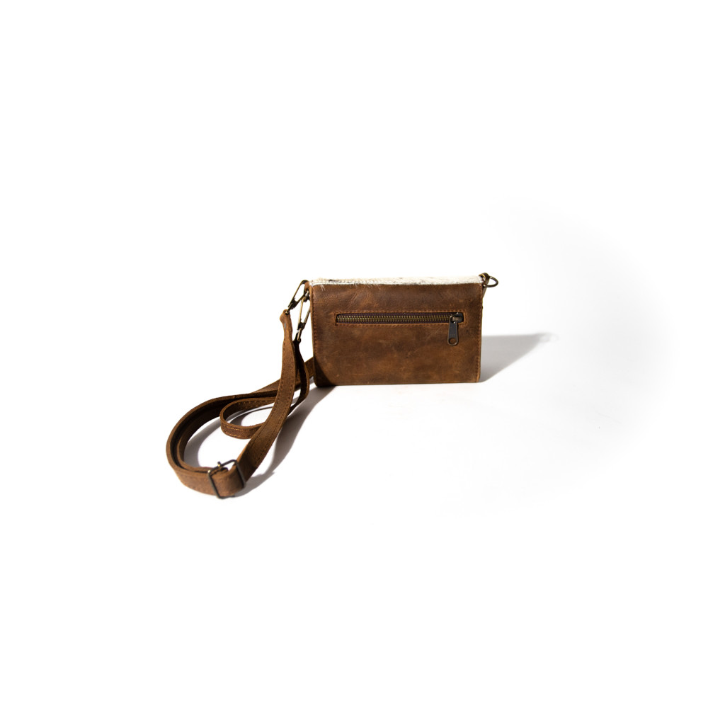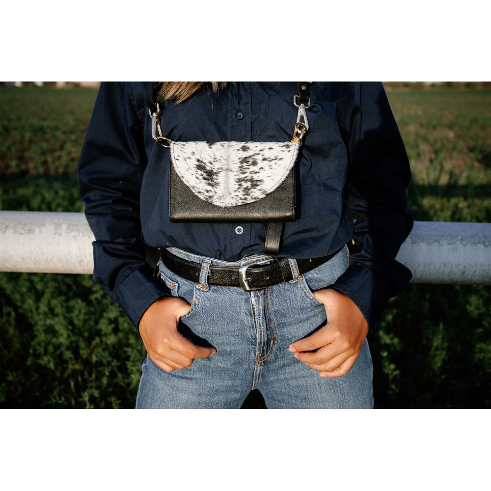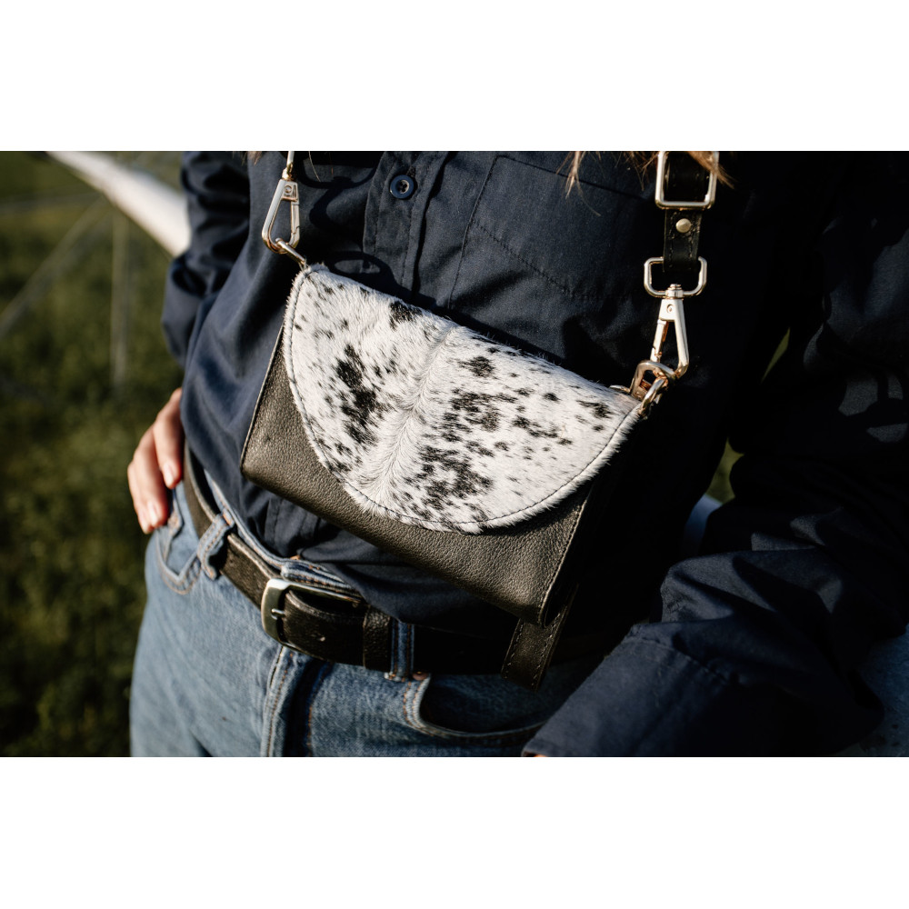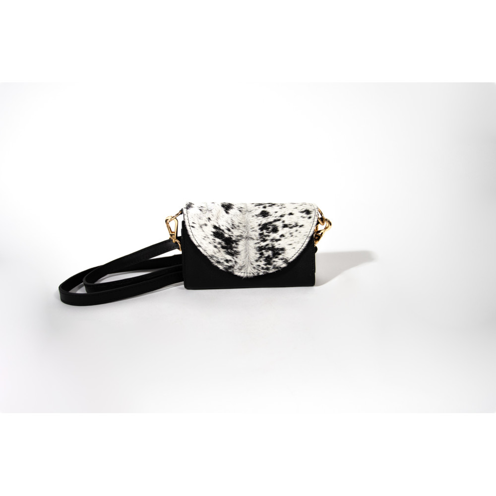El «Stevie» es una pieza que fusiona lo clásico con lo inesperado. Su cuerpo de piel negra y la solapa moteada tipo piel natural crean un contraste que evoca libertad, estilo y carácter. Los herrajes dorados y la correa larga completan un diseño pensado para mujeres que caminan con fuerza y elegancia. Piel genuina con solapa de textura moteada, inspirada en patrones naturales. Herrajes dorados y correa desmontable para llevarlo cruzado o al hombro. Interior funcional para lo esencial, con cierre seguro y estructura firme. Diseño que combina lo bohemio con lo urbano, ideal para destacar sin esfuerzo. El «Stevie» es para quienes no siguen tendencias: las crean. Un bolso que vibra con autenticidad y que, como su nombre, deja huella.