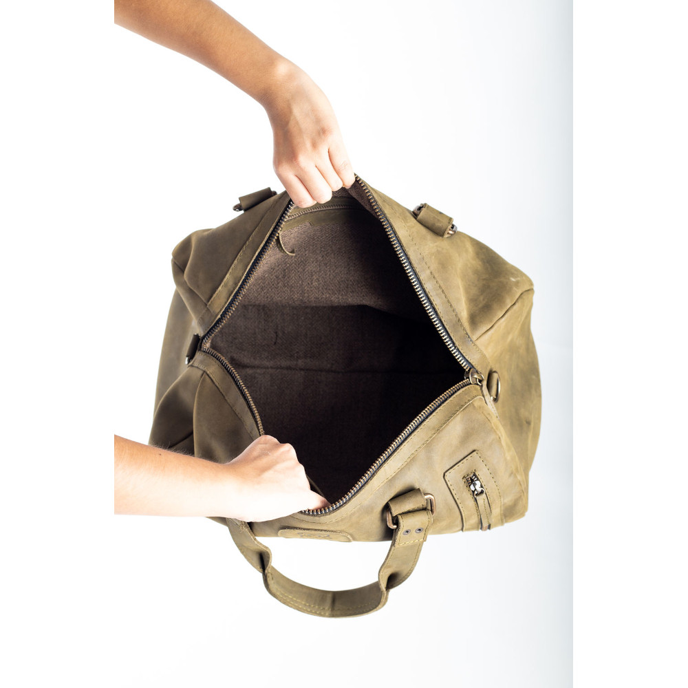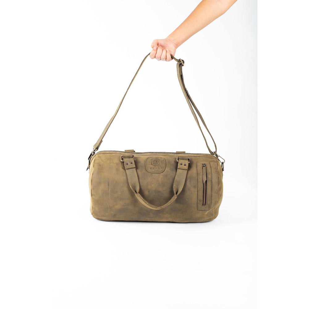 La “Santana” es una pieza que evoca caminos recorridos, historias vividas y destinos por descubrir. Su diseño cilíndrico en piel con acabado envejecido y detalles artesanales la convierten en el compañero perfecto para quienes viajan con intención y estilo. Piel genuina con textura rugosa y acabado vintage que mejora con el tiempo. Compartimento principal amplio con cierre superior y bolsillos laterales para organización adicional. Asas reforzadas y estructura firme para máxima durabilidad. Detalle frontal con parche grabado que aporta identidad y autenticidad. La “Santana” no es solo una maleta: es una extensión de tu espíritu libre. Hecha para quienes viajan con ritmo, con propósito y con estilo propio.